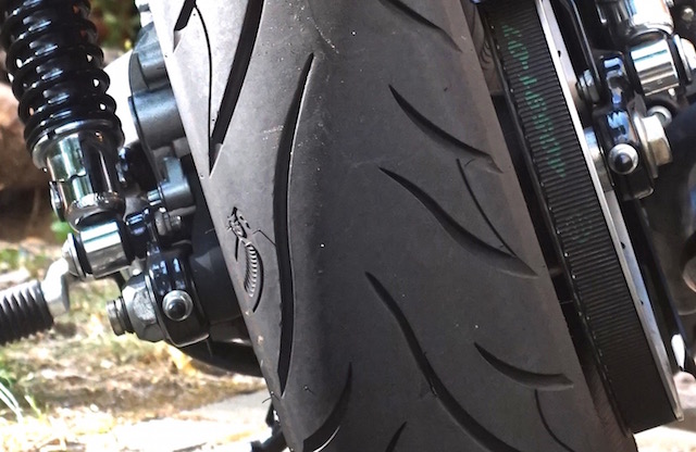 Ausserdem wurde die hintere Rundung des Fenders abgeschnitten und parallel zu den Struts begradigt, um dem Ganzen noch einen kleinen "sportlichen Touch" zu geben. Das originale Rücklicht und den Kennzeichenhalter ersetzte ich durch was Klassisches an etwas höherer Position. Die alten Befestigungslöcher müssen geschlossen und der Fender anschließend lackiert oder foliert werden. ReifenDie Sportster CA Modelljahr 2014 hat vorne und hinten Alufelgen mit den Maßen 16 x 3 Zoll. Die Bereifung hat vorne die Maße 130-90-16 und hinten 150-80-16. Erstbereifung sind die Michelin Scorcher, die bei Trockenheit OK sind, bei Nässe aber schon im Stand rutschen ;-)