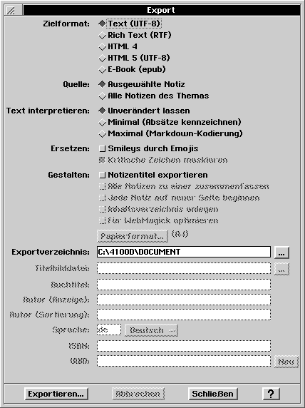 Sebi hat seine tolle Exportfunktion nochmals erweitert und einen ausführlichen Hilfetext hinzugefügt.